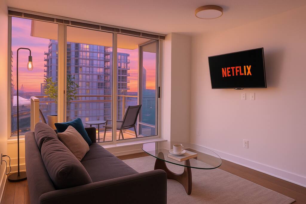 Cozy Bedrooms: 1. Bedroom 1: Queen-sized bed, private bathroom, desk, chair, with a lovely mountain view. 2. Bedroom 2: Queen-sized bed, desk, chair, closet, boasting an amazing city view. 3. Bedroom 3 Den: Single-sized bed perfect for extra guests (please note: this room does not have windows). Extra Sleeping Spot: – Comfy sofa in the…